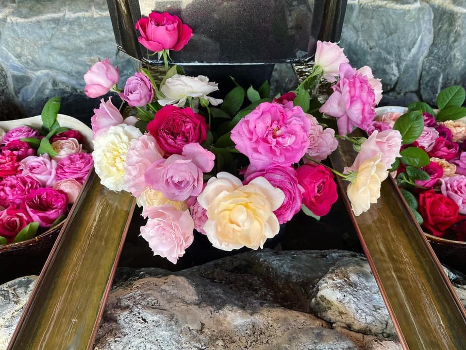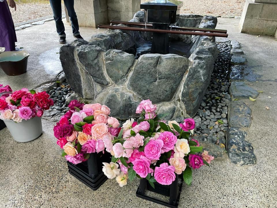 大井農園さんのバラの花手水の奉納に 私と彼もご一緒させていただきました。
